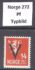 Påtryck på lösenmärken. Brunoliv. 1 öre. (N163 b, 2 färgvarianter klassade i Norgeskatalogen).